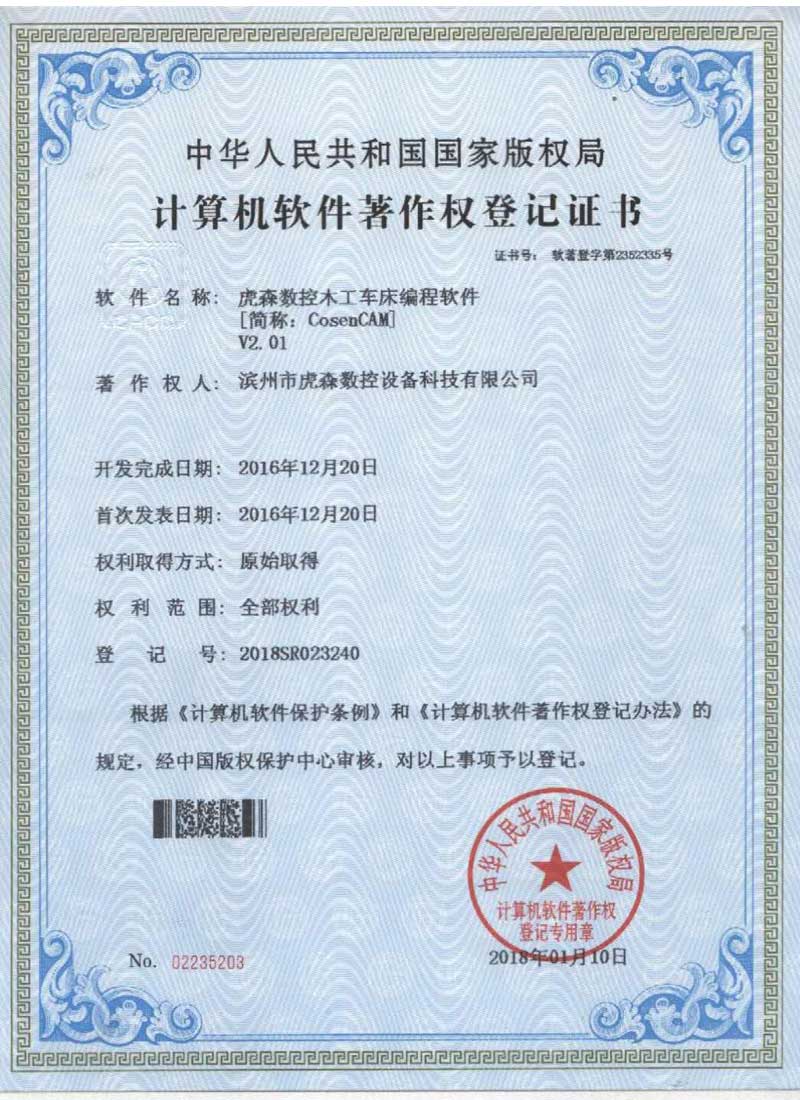 CosenCAM軟件著作權(quán)掃描件